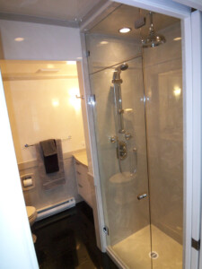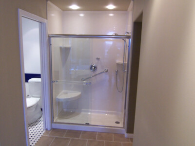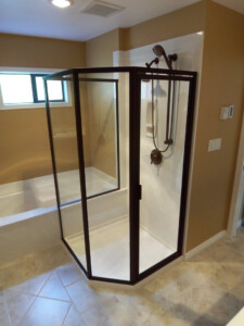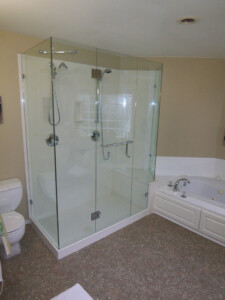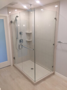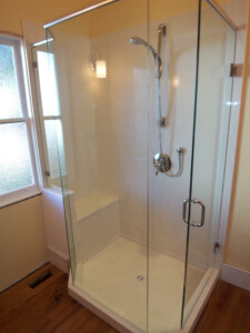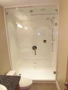 Before image of Precision Marble bathroom shower renovation Victoria Duncan Nanaimo cultured marble specialist